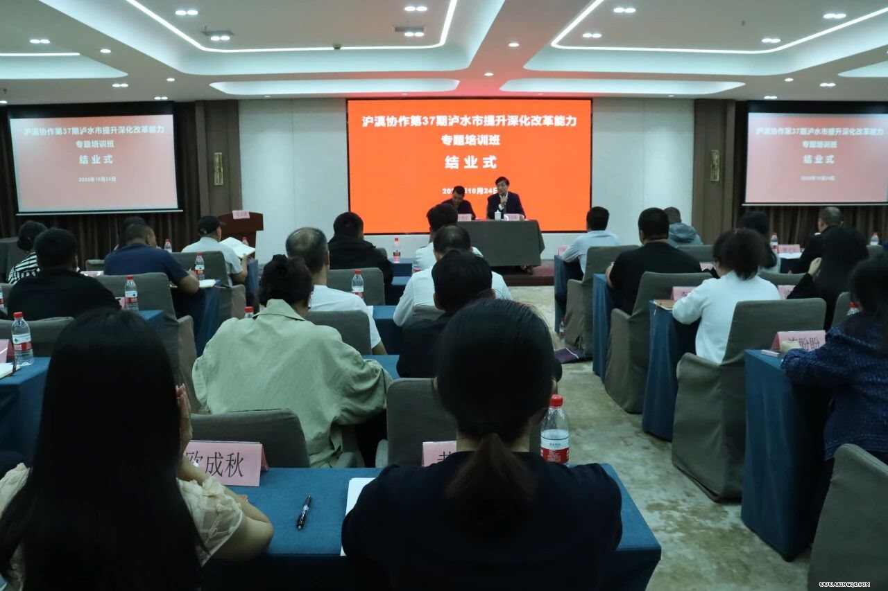 在浦东新区区委统战部民宗办和中共泸水市委组织部的关心支持下,10月24日下午,沪滇协作第37期泸水市提升深化改革能力专题培训班举行结业式。泸水市住房和城乡建设局党组书记、局长张德忠出席并讲话,上海市中华职业第二进修学院院长奚剑鑫主持仪式,全体参训学员参加。