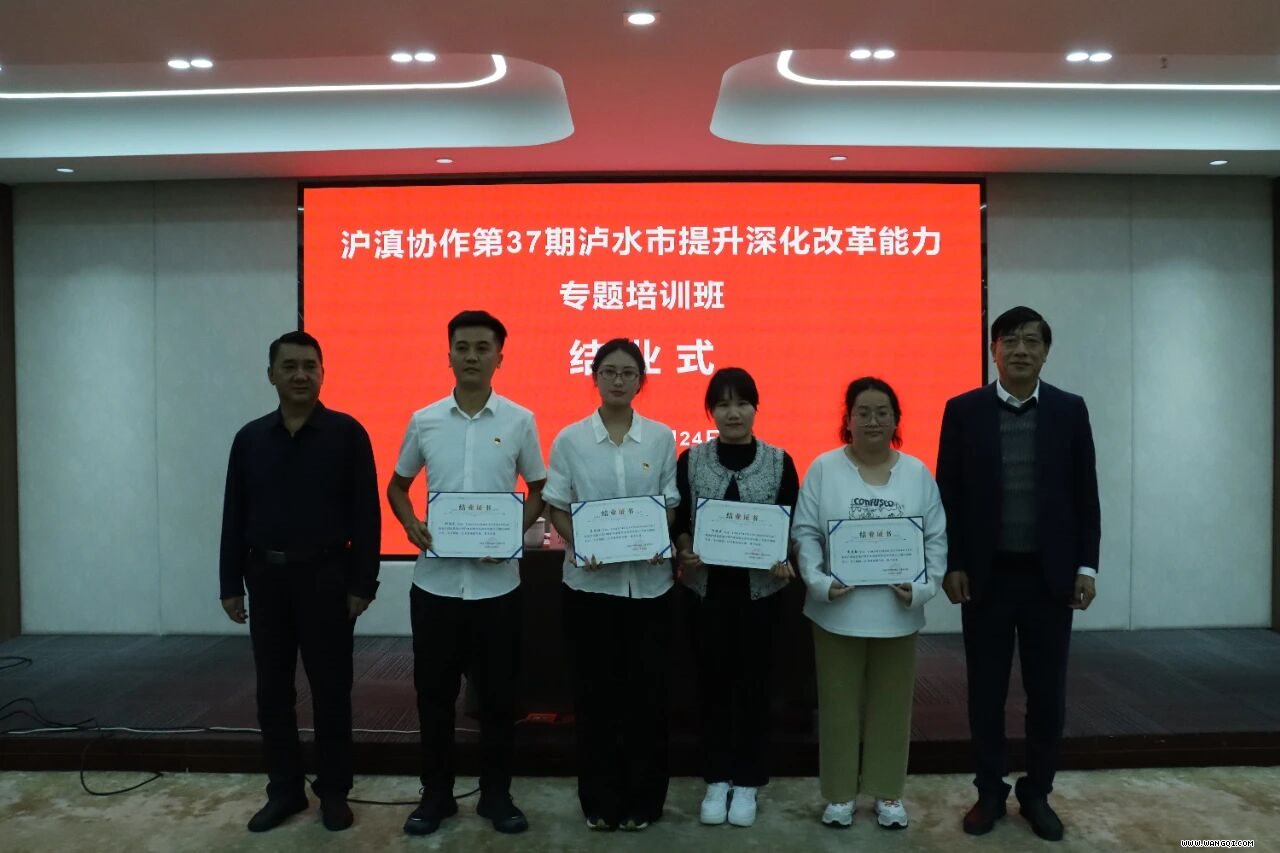 在浦东新区区委统战部民宗办和中共泸水市委组织部的关心支持下,10月24日下午,沪滇协作第37期泸水市提升深化改革能力专题培训班举行结业式。泸水市住房和城乡建设局党组书记、局长张德忠出席并讲话,上海市中华职业第二进修学院院长奚剑鑫主持仪式,全体参训学员参加。